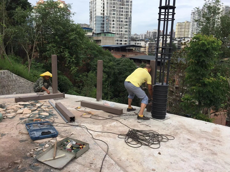 四川漁禪寺公園木塑欄桿、地板安裝中